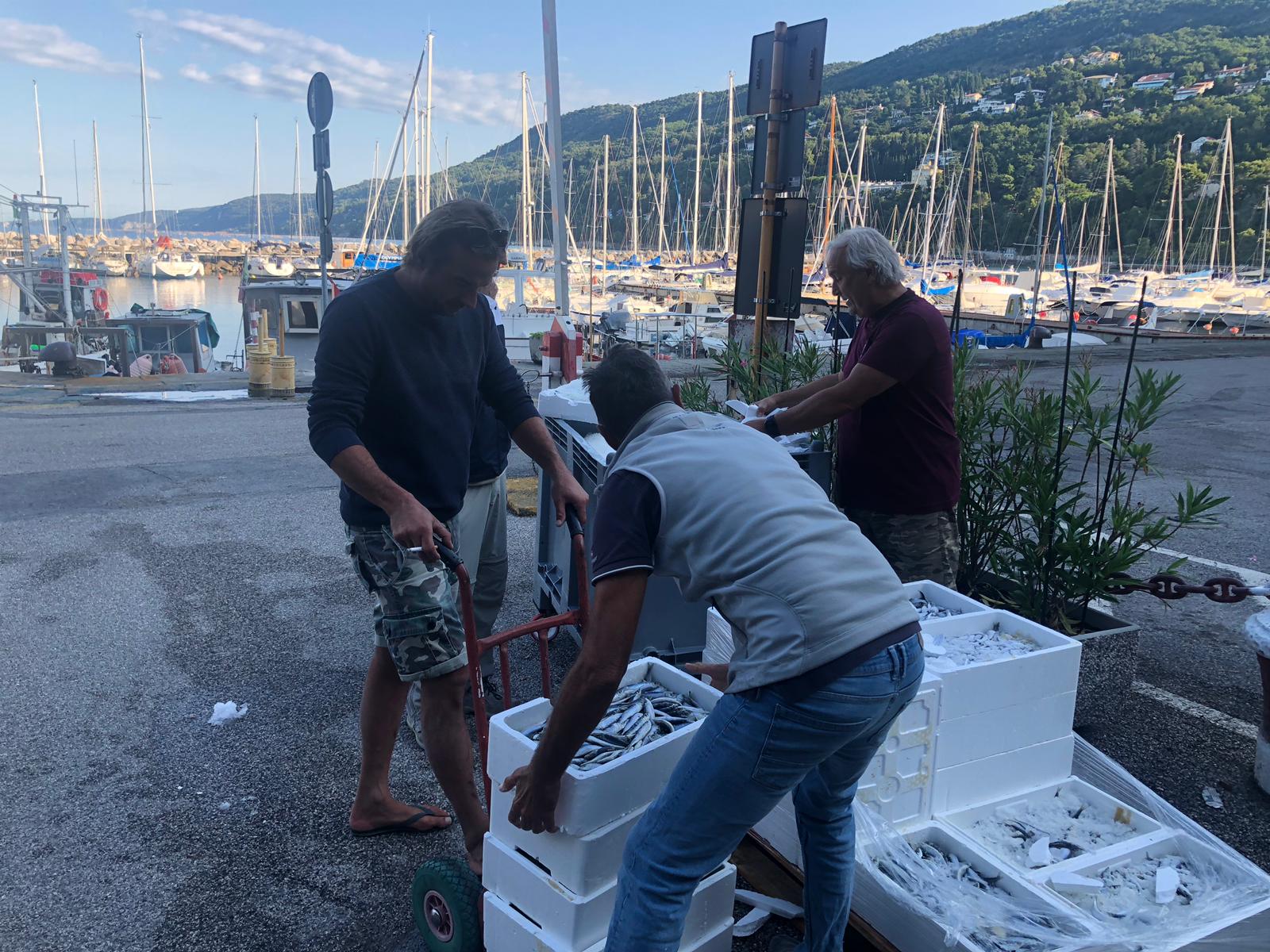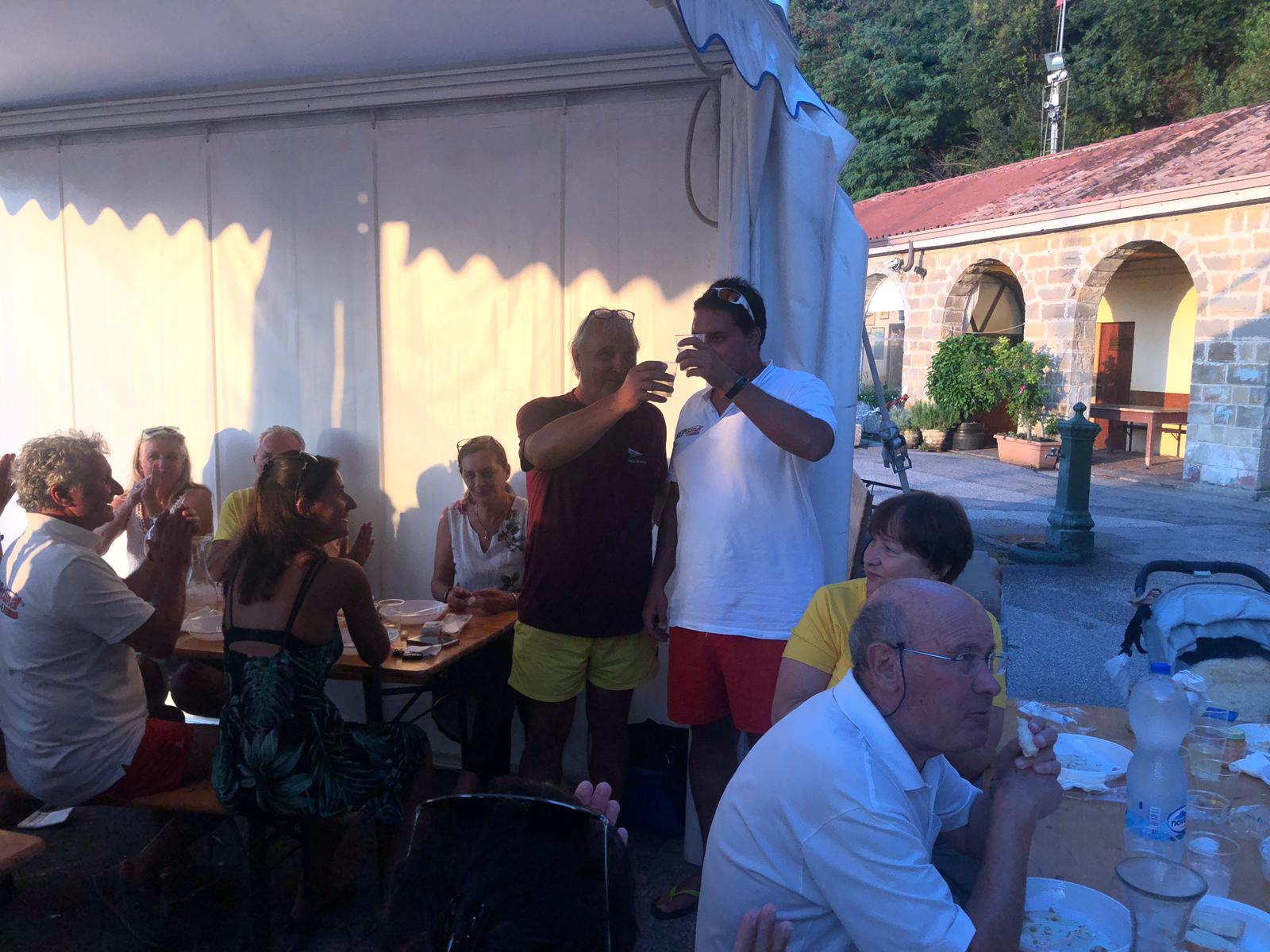 La giornata si è conclusa con i pescatori e alcuni familiari, tutti intorno ad una tavolata. Ottima la compagnia, il cibo e, non poteva mancare, il classico ‘bicer de vin’!